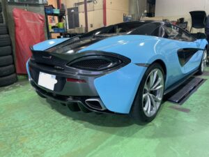 マクラーレン570S スパイダー マフラー交換! post date: 2026.03.09 こんにちは 松本です 今回はマクラーレンの570S スパイダーのマフラー交換のご紹介です! ラッピングでかわちいカラーになっています! 内装がタンカラーなので推しポイントです さっそくリフトアップ 工場いわく以前の570GTと比べて断然作業しやすい構造みたいです笑 しっかり音量アップしていい感じでした 交換後の写真を忘れるというミス、、、 次回はウィング取り付けですね ご用命いただきありがとうございました!